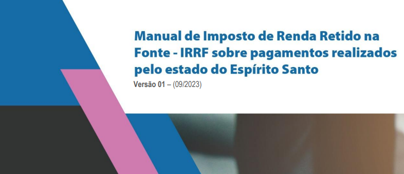 O objetivo do “Manual de Imposto de Renda Retido na Fonte - IRRF sobre pagamentos realizados pelo Estado do Espírito Santo” é sanar dúvidas das Unidades Gestoras e padronizar procedimentos, em especial quanto às alterações trazidas neste ano no Decreto Estadual nº 5460-R/2023 e na Instrução Normativa RFB nº 2145/2023.
