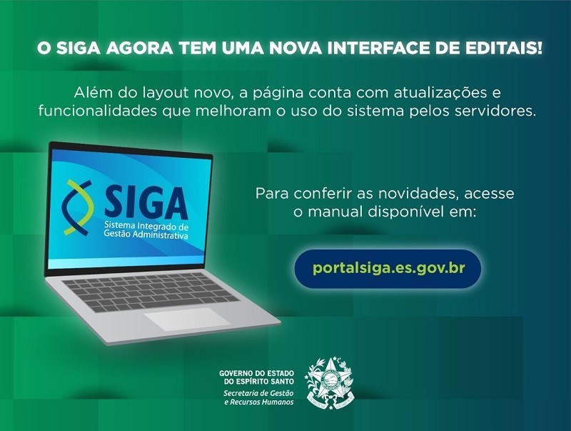 A Secretaria de Gestão e Recursos Humanos (Seger) e o Instituto de Tecnologia da Informação e Comunicação (Prodest) disponibilizaram, nesta sexta-feira (19), uma nova interface para a tela de Editais de Licitação do Sistema Integrado de Gestão Administrativa do Governo do Estado (SIGA).