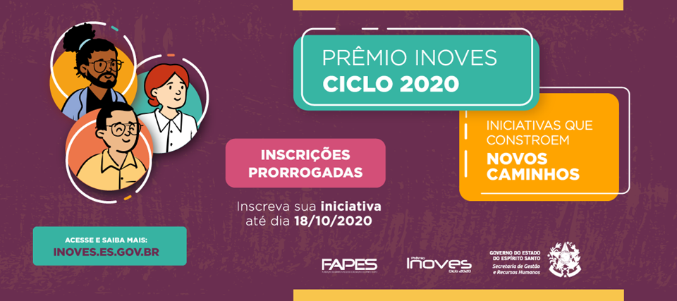 Os servidores públicos do Espírito Santo terão mais tempo para inscrever suas ideias e projetos no Ciclo 2020 do Inoves. O prazo para disputar essa edição foi prorrogado para até o próximo dia 18 de outubro. O regulamento do programa pode ser acessado no site www.inoves.es.gov.br - mesmo canal em que são efetuados os cadastros.