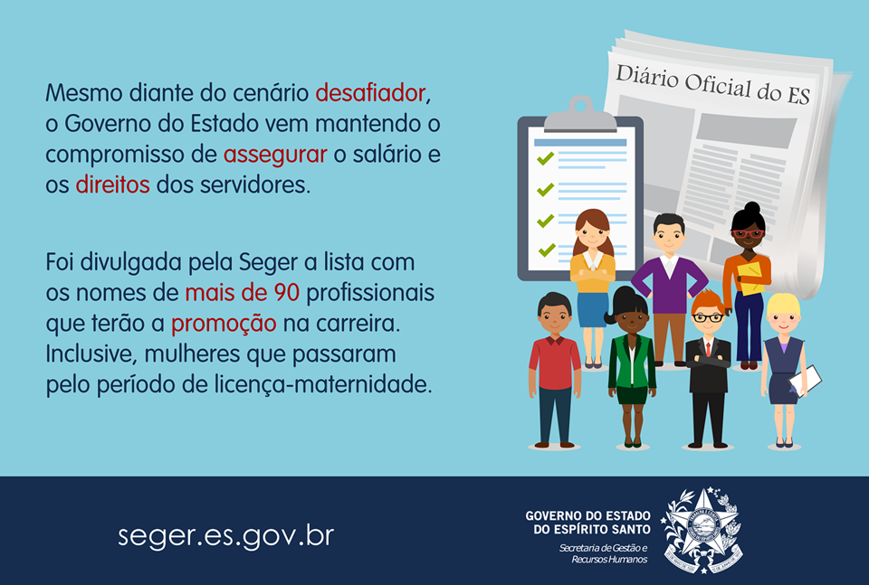 A lista de promoção por seleção, publicada nesta segunda-feira (17), inclui os nomes de servidoras que passaram pelo período de licença-maternidade. Isso só foi possível graças à Lei Complementar Nº 9/2017, sancionada pelo governador Paulo Hartung, em maio deste ano.