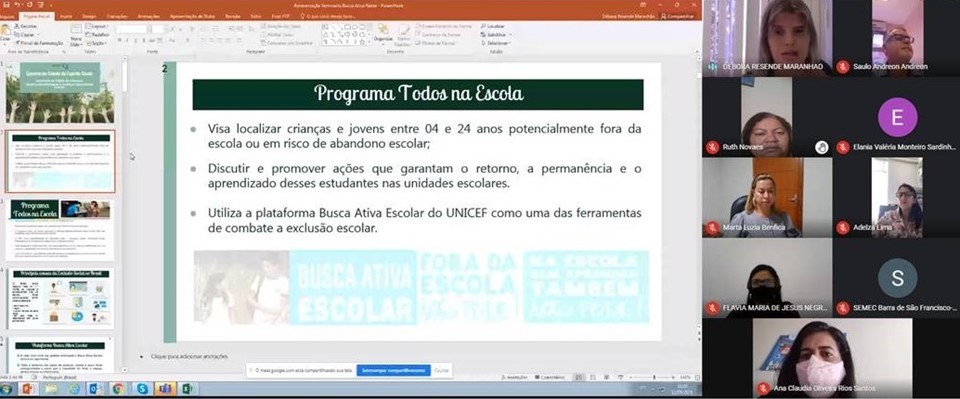 Seminário dá continuidade à reflexão sobre Busca Ativa Escolar junto aos municípios do Espírito Santo