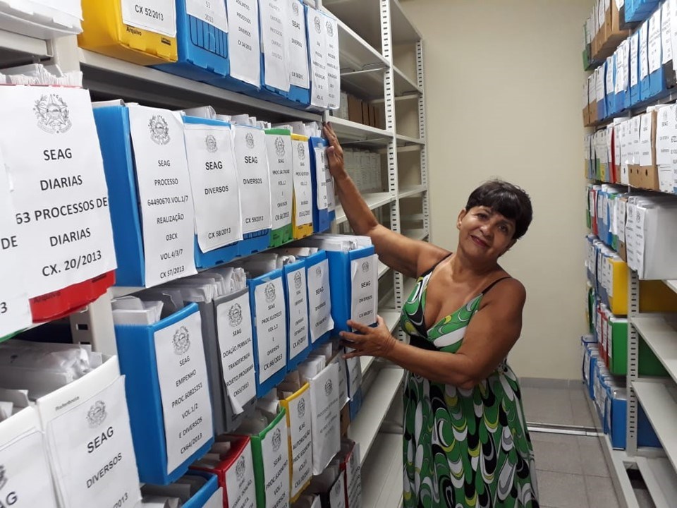Na Secretaria de Agricultura, ela é a responsável por organizar e guardar todos os documentos. Valoriza a função e mostrar, com orgulho, as estantes de documentos muito bem organizadas, espalhadas por duas salas.