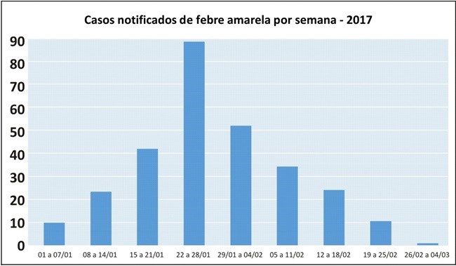 Este ano, até sexta-feira (03), a Secretaria de Estado da Saúde do Espírito Santo (Sesa) recebeu 253 notificações de suspeita de febre amarela. Trinta notificações foram descartadas. Do total de 223 casos, 78 foram confirmados para febre amarela silvestre, sendo que 19 casos evoluíram para óbito – Muniz Freire (03), Colatina (03), Ibatiba (02), Irupi (02), Itarana (02), Laranja da Terra (01), Pancas (01), São Roque do Canaã (01), Afonso Cláudio (01), Brejetuba (01), Conceição do Castelo (01) e Aracruz (01).