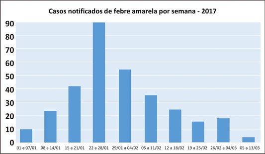 A Sesa recebeu notificação de mortes de macacos em 52 municípios, dos quais 21 municípios tiveram amostras confirmadas para febre amarela: Afonso Cláudio, Cariacica, Castelo, Colatina, Conceição do Castelo, Domingos Martins, Guarapari, Ibatiba, Irupi, Itaguaçu, Itarana, Iúna, Laranja da Terra, Marechal Floriano, Pancas, Santa Maria de Jetibá, Santa Teresa, Serra, Venda Nova do Imigrante, Viana e Vitória.