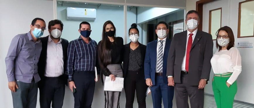 Estiveram presentes na apresentação os assessores da Sesa, Edson Pistori, Manoel Carlos Rocha Lima, Lucena Nogueira Wetler, além dos profissionais da Gerência de Demandas Judiciais em Saúde da Secretaria, Caroline Gomes Coura Barbosa e Fabricio Santos Neves.