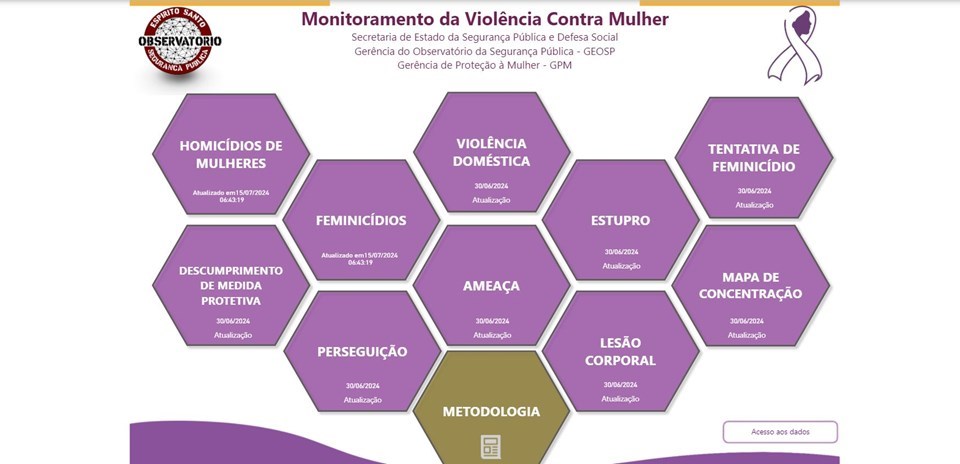 A Secretaria da Segurança Pública e Defesa Social (Sesp) lançou, na última quinta-feira (11), o novo Painel de Monitoramento de Crimes Contra a Mulher. A ferramenta, que está disponível na aba de estatísticas do portal on-line da Secretaria, agrega dados dos principais crimes cometidos contra vítimas do sexo feminino em todo o Espírito Santo.