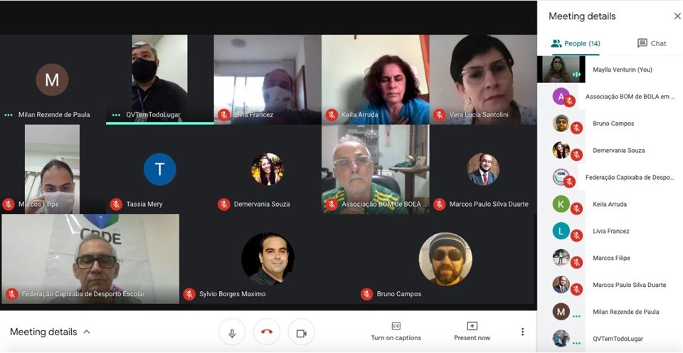 A Secretaria de Esportes e Lazer (Sesport) realizou, nessa quinta-feira (13), uma reunião, por videoconferência, com representantes das federações esportivas do Espírito Santo. Na conversa, foi apresentado o novo modelo de Plano de Trabalho, que deve ser preenchido pelas organizações para quaisquer solicitações a serem encaminhadas à Secretaria.