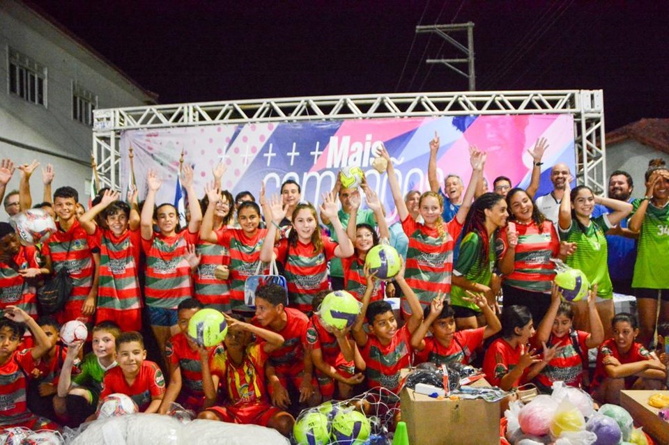 Em Sooretama, o evento foi realizado na quadra poliesportiva Romarinho, onde foram entregues materiais para quatro modalidades: futebol de campo, futsal, ginástica rítmica e natação. O secretário municipal de Esportes, José Ferraz, reforçou que o material entregue vai ser o chamariz para a participação de novas crianças no projeto.