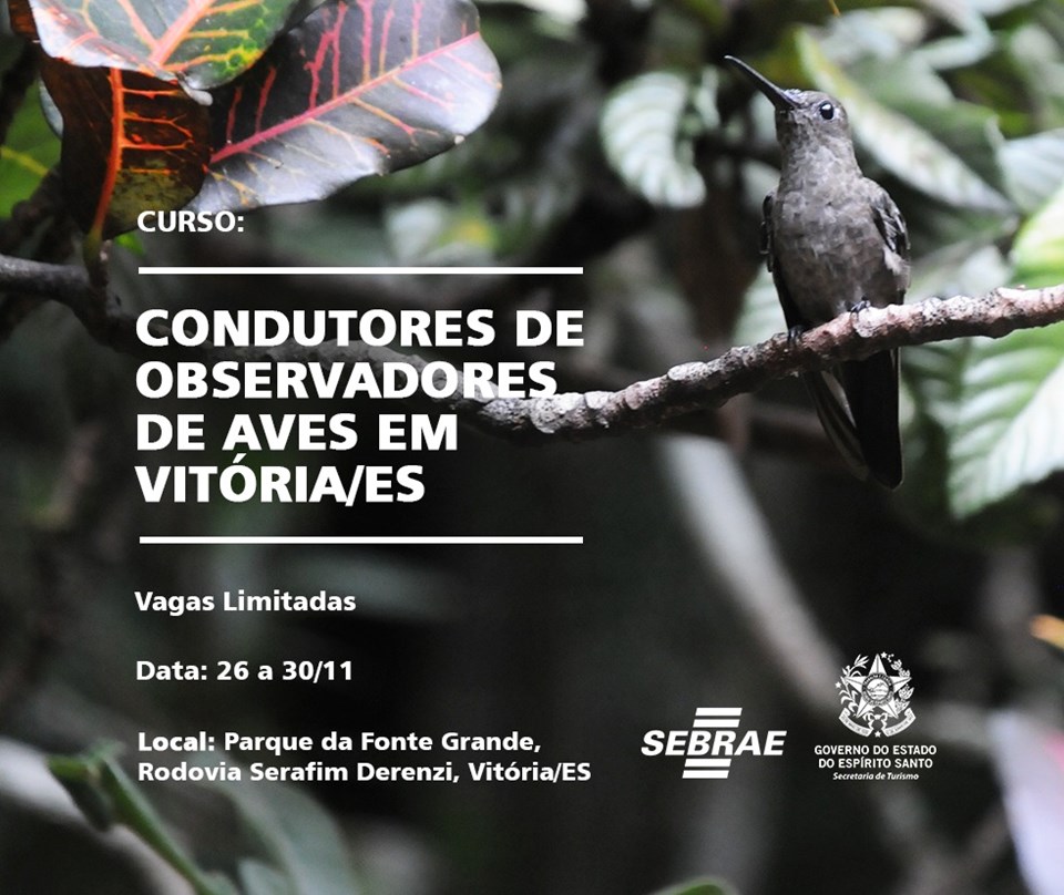 Possui um pequeno negócio que opera serviços no segmento de Ecoturismo e Turismo de Aventura no Espírito Santo? A Secretaria de Estado de Turismo (Setur), em parceria com o Serviço Brasileiro de Apoio às Micro e Pequenas Empresas (Sebrae-ES), abriu as inscrições para o Curso “Condutores de Observadores de Aves em Vitória/ES”.