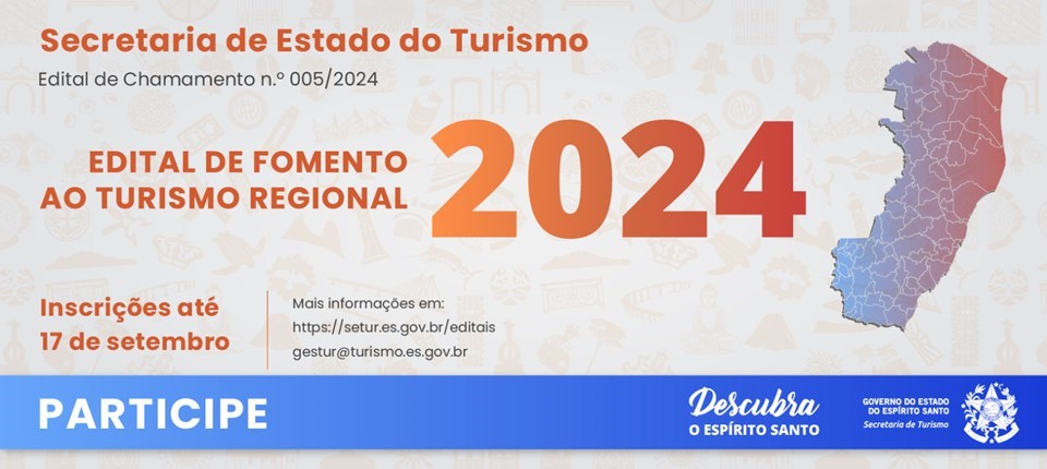 A Secretaria do Turismo (Setur), por meio da Gerência de Gestão do Turismo (Gestur), anunciou, nesta segunda-feira (19), o lançamento do Edital de Fomento ao Turismo Regional. Com um investimento total de R$ 600 mil, o edital tem como objetivo impulsionar o desenvolvimento turístico nas diversas regiões do Espírito Santo, alinhado às diretrizes do Programa de Regionalização do Turismo.