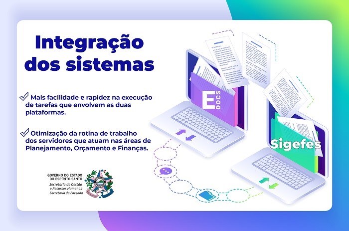 A partir da próxima segunda-feira (09), o Sistema de Gestão das Finanças Públicas do Espírito Santo (Sigefes) e o Sistema de Gestão de Documentos Arquivísticos Eletrônicos do Governo do Estado (e-Docs) passam a funcionar de forma integrada. A mudança facilita e agiliza os procedimentos de trabalho que envolvem as duas plataformas.
