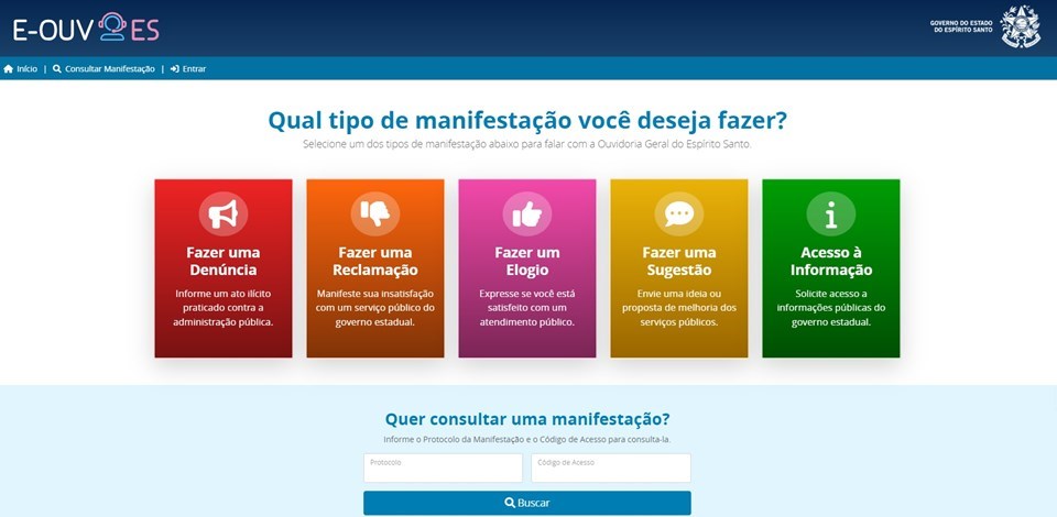 O sistema E-Ouv recebeu mais de 13,6 mil manifestações no primeiro semestre deste ano, de acordo com a Ouvidoria-Geral do Espírito Santo, vinculada à Secretaria de Controle e Transparência (Secont). A ferramenta, responsável por receber as demandas da população, é desenvolvida e mantida pelo Instituto de Tecnologia da Informação e Comunicação do Estado do Espírito Santo (Prodest).