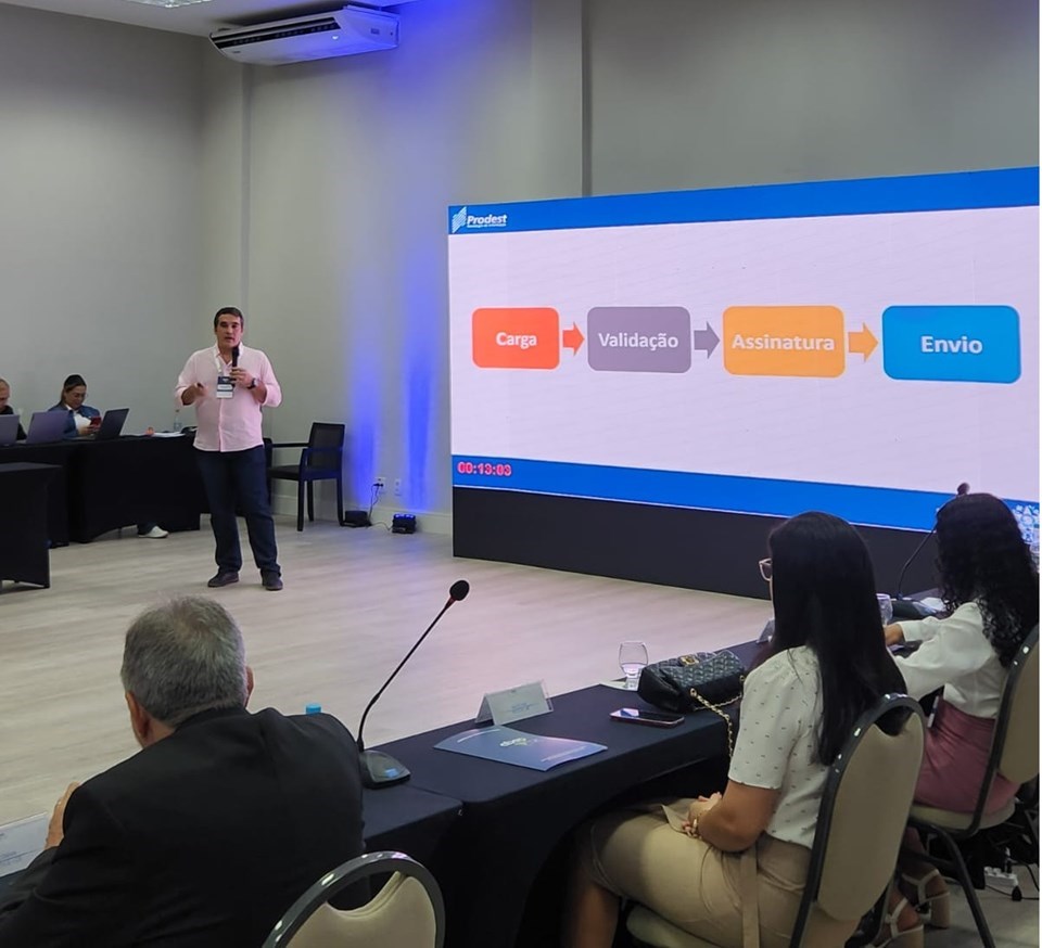 No evento realizado em Vitória, o supervisor de Sistemas de Pessoal e Trânsito do Prodest, Daniel Sanches, foi o responsável por apresentar o ESocial PRO, desenvolvido pela autarquia em parceria com a Secretaria de Gestão e Recursos Humanos (Seger).