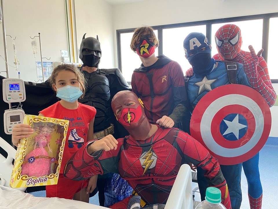 A equipe de super-heróis é do município de Cariacica e atua em outros hospitais da Grande Vitória há quatro anos, tendo visitado o Himaba pela primeira vez. O grupo é composto por Marcelo Moraes (Batman), Almir Júnior (Homem Aranha), Fransuel Manea (Capitão América), Maicon Richard (Flash) e Artur Batraque (Robin).