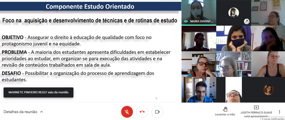O encontro, coordenado pelas supervisoras escolares Judith Ferraço Suave, Maria Davina Pandolfi e Roseliliam Candeia Rodrigues, já estava previsto no calendário de atividades da SRE e, mesmo com a suspensão das aulas presenciais, foi mantido, considerando a relevância do Estudo Orientado para que os estudantes desenvolvam, por meio das Atividades Pedagógicas Não Presenciais (APNPs) e orientação dos docente, rotinas e hábitos de estudo que possibilitem a organização do processo de aprendizagem, com foco no protagonismo.