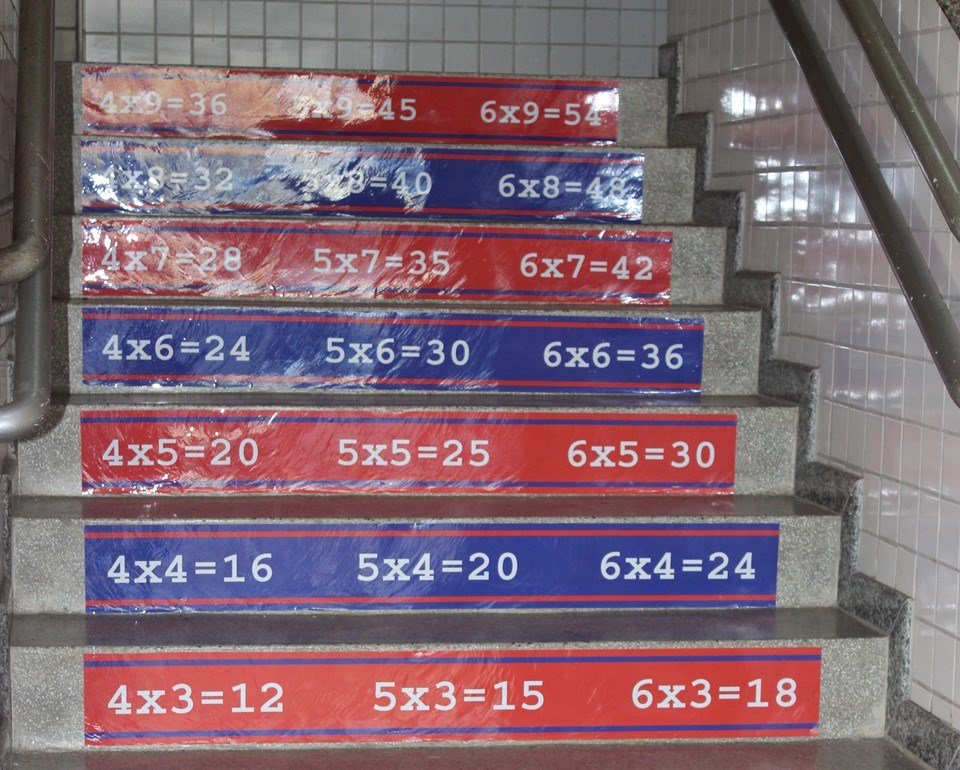 Visando a reforçar a aprendizagem da tabuada de multiplicação, a Escola Estadual de Ensino Fundamental e Médio (EEEFM) Silvio Egito Sobrinho, localizada no município da Serra, está desenvolvendo o projeto “Escada da multiplicação”.