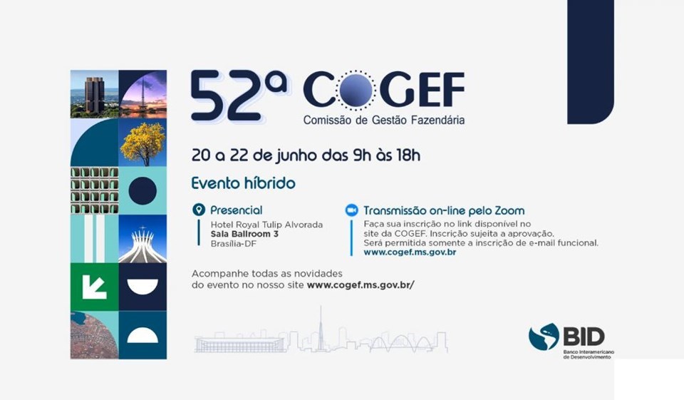 Também haverá participação de representantes do BID, da Secretaria do Tesouro Nacional (STN), da Receita Federal do Brasil, entre outros órgãos e instituições. Para participar, basta se inscrever pelo site www.cogef.ms.gov.br.