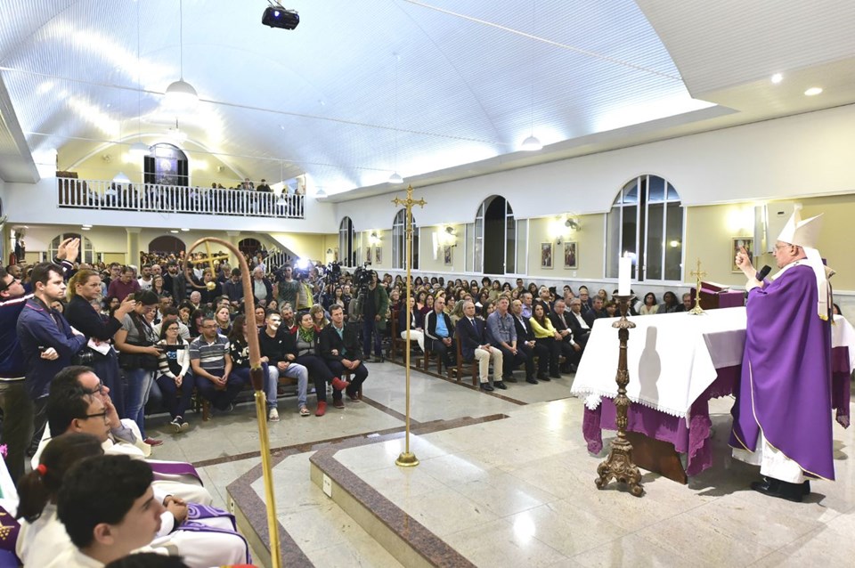 O líder religioso destacou a importância da fé nos momentos de perda e de dor e pediu para que as pessoas reflitam sobre a fragilidade da vida. A missa começou pontualmente às 20 horas, porém os primeiros fiéis chegaram antes e por volta das 19h20 a comunidade já estava completamente cheia. A acolhedora igreja ficou lotada e dezenas de pessoas precisaram assistir a celebração na varanda ou área externa. Familiares das vítimas e sobreviventes do acidente sentaram nos primeiros bancos da igreja, junto às autoridades.