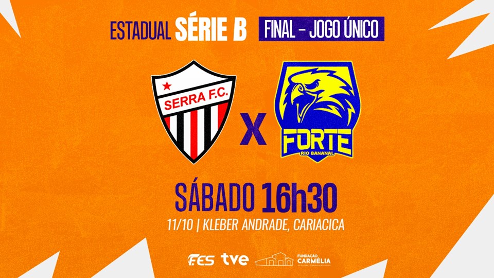 No próximo sábado (11), o torcedor vai conhecer mais um campeão do futebol capixaba. Serra e Forte FC se enfrentam na batalha final do Estadual Série B no Estádio Kleber Andrade, com transmissão ao vivo pela TVE. A partida está marcada para as 16h30, mas a equipe da emissora estará no ar desde às 16 horas, transmitindo a expectativa das torcidas e os bastidores do duelo.