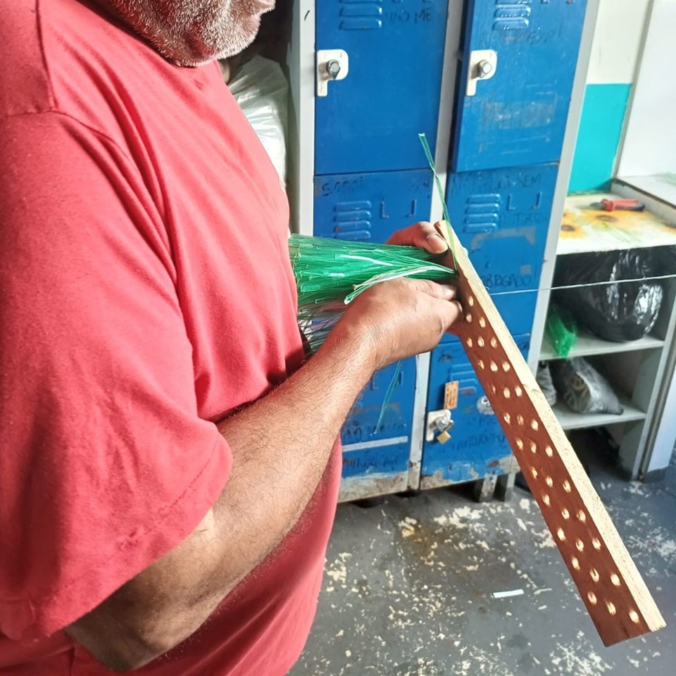 “É o Sindicato Rural de São Mateus quem faz o recolhimento das garrafas pets e a entrega à unidade prisional. Assim como as empresas Oxford e MarcoPolo São Mateus contribuem com a doação de paletes, que são usados para fazer o cabo da vassoura e a base da escova de limpeza. Todo o trabalho é realizado de forma artesanal, promovendo, além de uma atividade ocupacional aos detentos, sustentabilidade e cuidado com o meio ambiente”, explicou Flávio Oggioni.