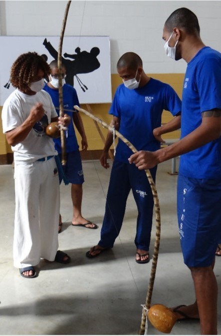 Internos do Centro de Detenção e Ressocialização de Linhares (CDRL) participaram de atividades desde a terça-feira (17). Na programação, documentário, oficina de confecção de bonecas, roda de capoeira, oficina de berimbau. Os professores da unidade, servidores e alguns convidados foram responsáveis por conduzir as ações.