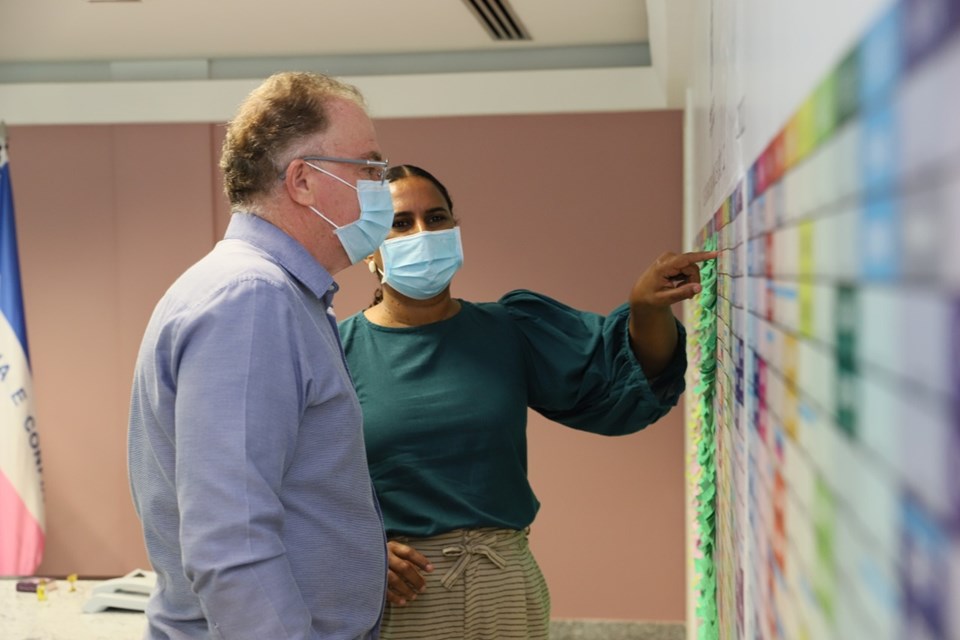 Participaram da reunião as secretárias de Estado Cyntia Figueira Grillo (Trabalho, Assistência e Desenvolvimento Social); Lenise Meneses Loureiro (Gestão e Recursos Humanos); e Flavia Mignoni (Comunicação Social); além da diretora-presidente da Fundação de Amparo à Pesquisa e Inovação do Espírito Santo (FAPES), Cristina Engel de Alvarez; e da diretora-presidente da Escola de Serviço Público do Espírito Santo, Nelci do Belém Gazzoni.