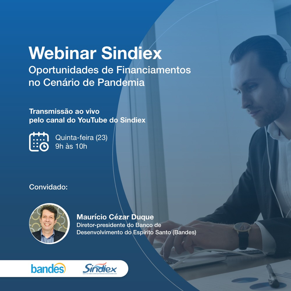 O cenário econômico, oportunidades de financiamento para durante a pandemia e alternativas para investimentos direcionados às empresas de comércio exterior do Estado na retomada econômica serão alguns dos assuntos tratados no webinar “Oportunidades de financiamentos no cenário de pandemia”, com o diretor-presidente do Banco de Desenvolvimento do Espírito Santo (Bandes), Maurício Cézar Duque.