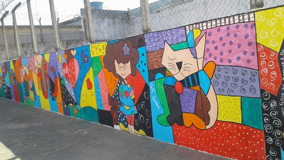 Incentivadas pelos educadores das unidades, as jovens colocaram a mão na massa e, em atividade pedagógica, pintaram um dos muros do local. As cores e formas não deixam dúvidas: as jovens usaram como base as famosas telas do pintor brasileiro Romero Brito.