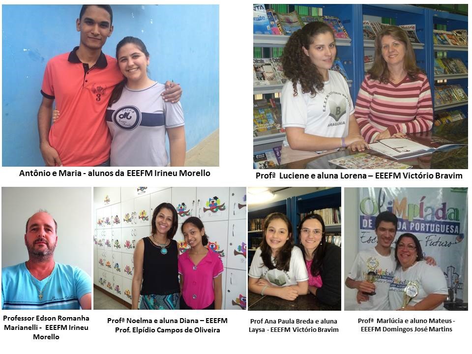 Os estudantes são: Lorena João Daniel e Laysa Gilles Guidi, da Escola Victório Bravim, de Domingos Martins; Antônio Carlos da Silva e Maria Gottardo Morello, da Escola Irineu Morello, de Governador Lindenberg; Mateus Dutra da Silva, da Escola Domingos José Martins, de Marataízes; Diana de Souza Pereira dos Santos, da Escola Professor Elpídio Campos de Oliveira, de Montanha.