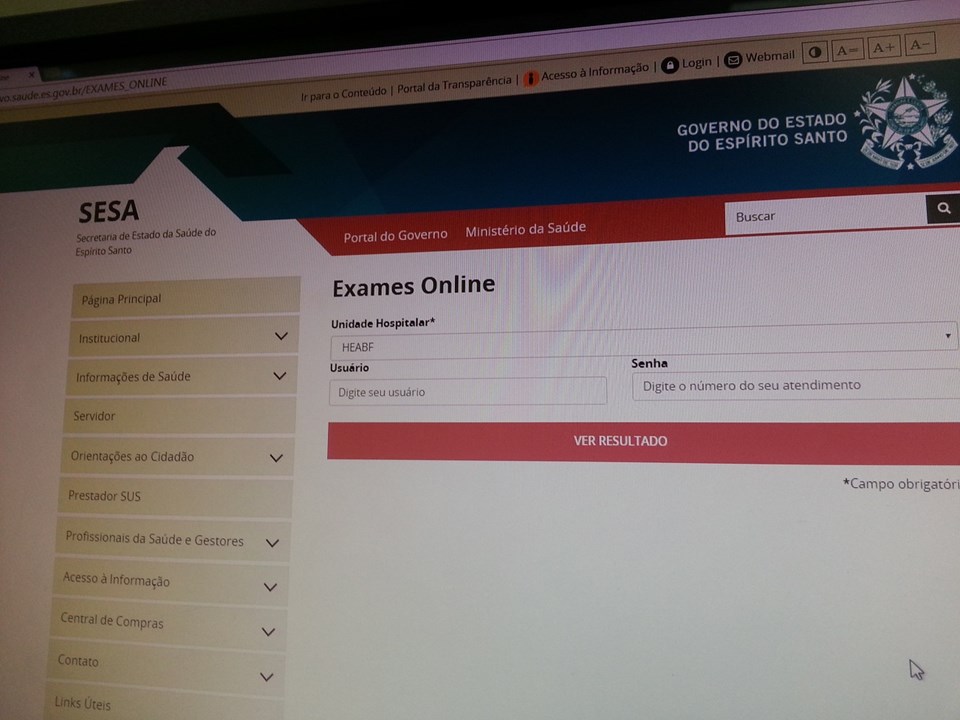 Pacientes que realizam exames laboratoriais enquanto internados no Hospital Estadual Antônio Bezerra de Faria, em Vila Velha, agora podem acessar os resultados on-line, após receberem alta, utilizando login e senha fornecidos pelo hospital. A oferta desse serviço era uma das entregas esperadas do Projeto Choque de Gestão, iniciado no hospital em agosto do ano passado, e representa o início de uma gestão hospitalar plenamente informatizada. Os resultados poderão ser acessados inclusive pelo celular.