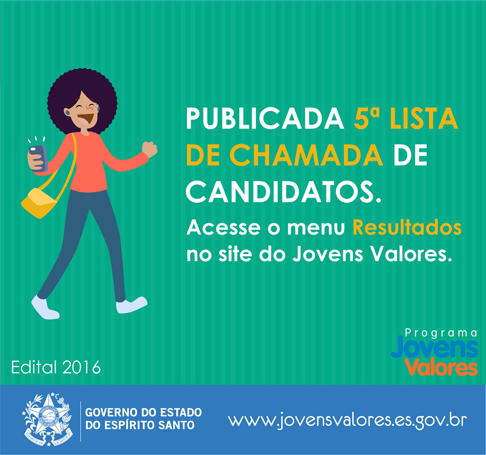 Foram pré-selecionados mais 300 estudantes da Grande Vitória e Interior para as vagas de estágio do programa Jovens Valores, do Governo do Estado. A lista da 5ª chamada foi publicada, nesta terça-feira (16), no menu “Resultados” do portal eletrônico www.jovensvalores.es.gov.br.