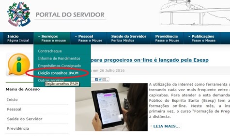Atenção servidores ativos (efetivos) e aposentados do Regime Próprio de Previdência Estadual (ES-Previdência). A eleição dos Conselhos Administrativo e Fiscal do Instituto de Previdência do Estado (IPAJM) termina nesta quarta-feira (10), às 18h.