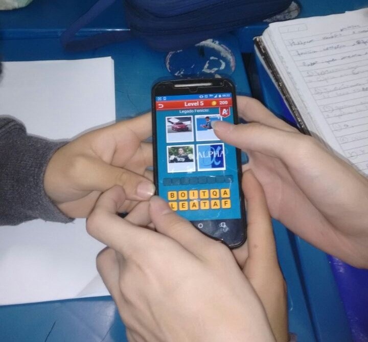 Com o objetivo de conscientizar sobre o uso do celular de maneira correta e melhorar o desenvolvimento dos alunos na disciplina, a professora Eliana informou que também foi utilizado o recurso musical, a fim de criar um ambiente descontraído.