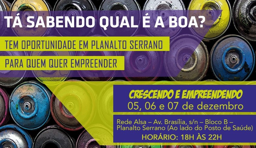 São 60 vagas disponíveis, 30 para cada bairro. As inscrições para o Crescendo e Empreendendo vão até a próxima segunda-feira (05), dia em que as aulas começam. As duas turmas também terão aulas nas próximas terça (06) e quarta-feira (07), sempre das 18h às 22h.